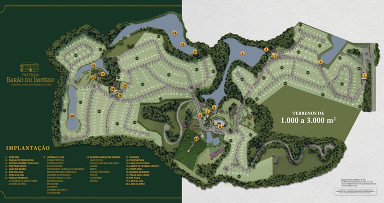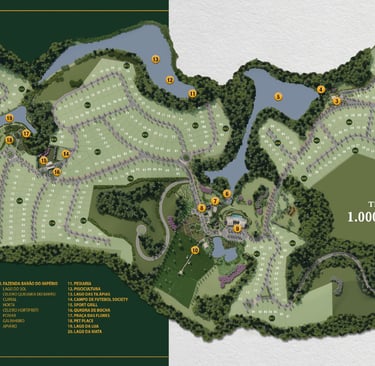Empreendimento agrogastronômico verdadeiramente especial e único no Brasil é a nossa fazenda interna. Um conceito inovador onde a natureza e a comunidade se unem. Imagine ter acesso a produtos frescos e de alta qualidade, como leite puro, queijos especiais, mel natural, ovos caipiras, peixes saborosos e uma variedade de hortifrutis orgânicos, diretamente da nossa produção, lotes espaçosos, 1000m² à 3000 m², onde a natureza exuberante se encontra com o conforto e a segurança que você e sua família merecem.