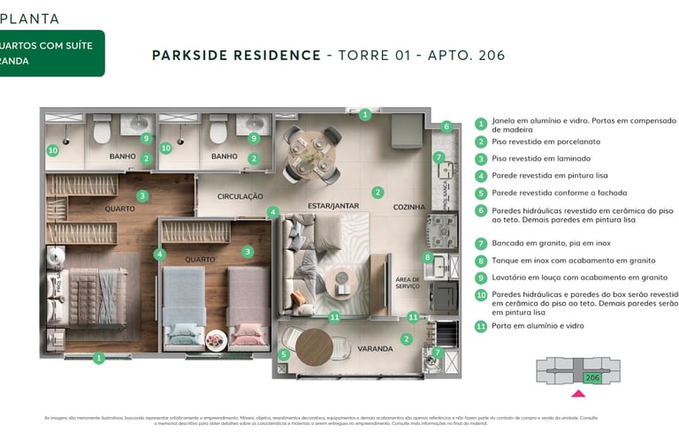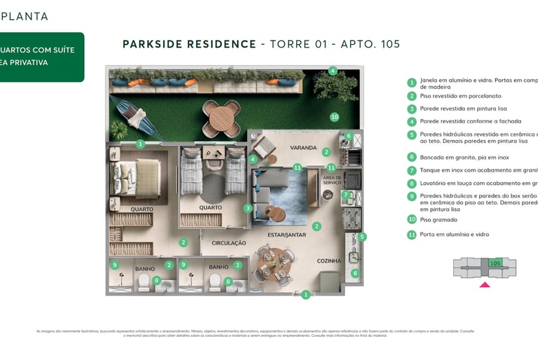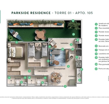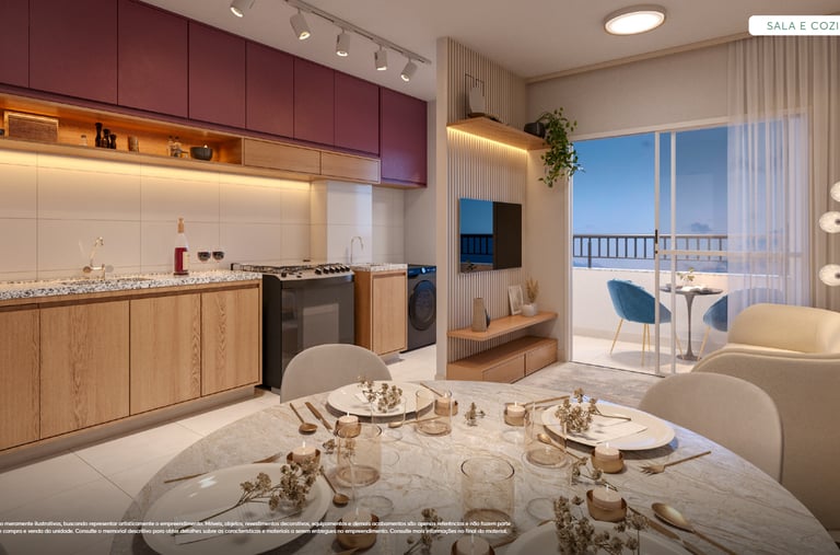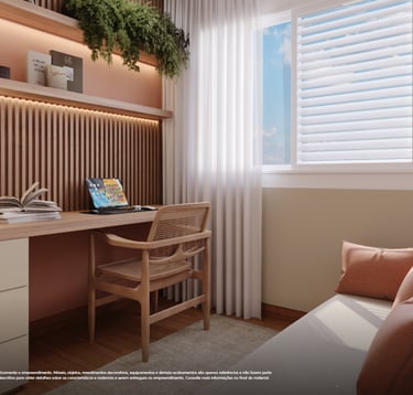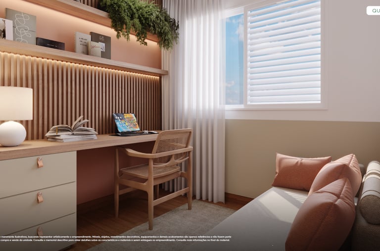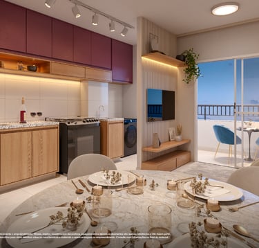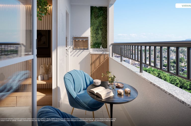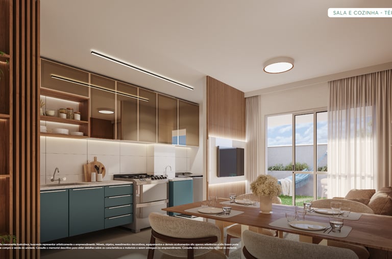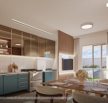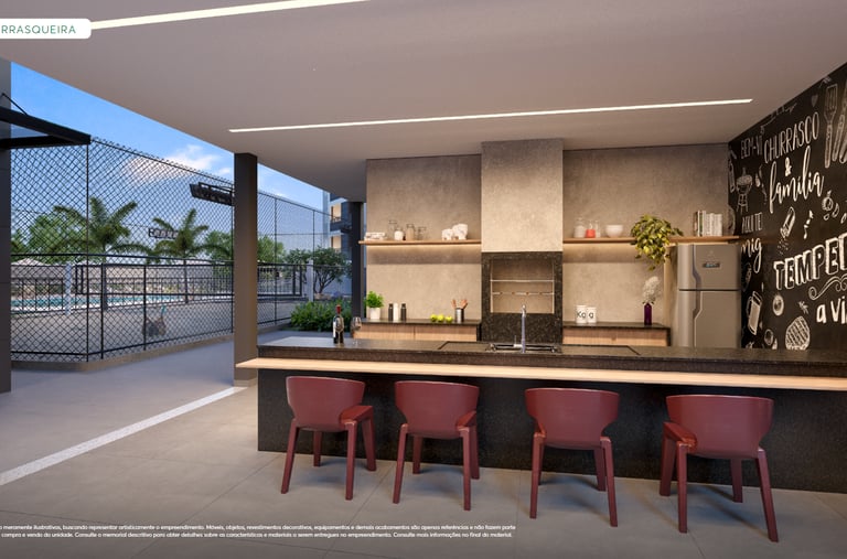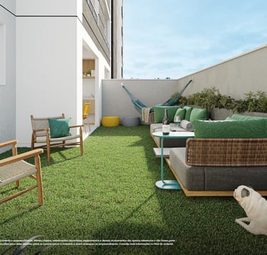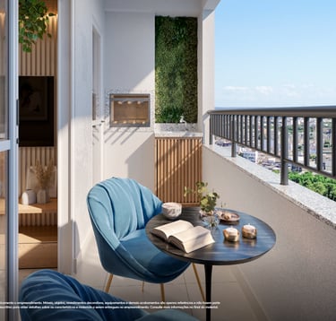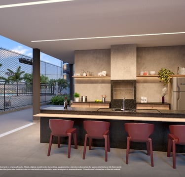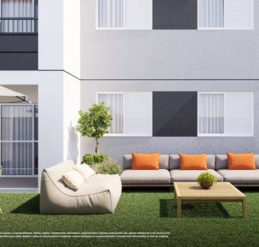 ✨ Apartamentos com plantas maiores, 2 quartos (1 suíte), sala e cozinha integradas e uma varanda gourmet com churrasqueira. Opção no térreo com uma área privativa e ainda mais espaço e iluminação natural. Acabamentos com piso laminado nos quartos, porcelanato nas demais áreas, bancadas em granito e janelas venezianas que garantem a privacidade.