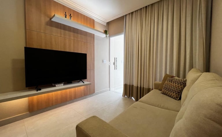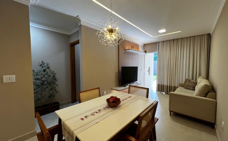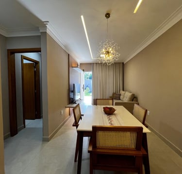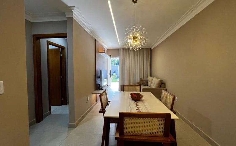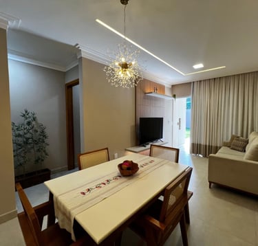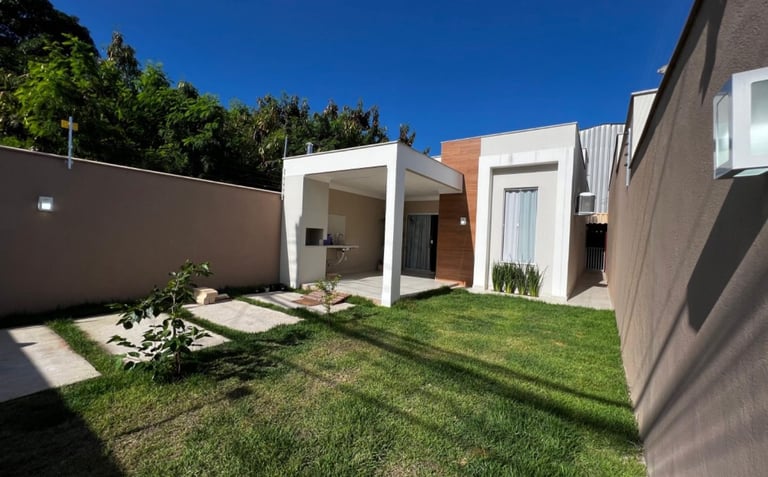 🔑 Casa com 2 Quartos (Suíte) amplos e arejados, 2 Banheiros c/acabamento premium, Sala de TV e Jantar integradas (conceito aberto). Acabamento impecável e uma planta inteligente, ela é o cenário perfeito para os seus melhores momentos. Piso em porcelanato em todos os ambientes e paredes com revestimento moderno, pintura interna em tom "Cortiça" da Suvinil, garantindo sofisticação e aconchego, pontos de ar-condicionado já instalados na sala americana e nos quartos.