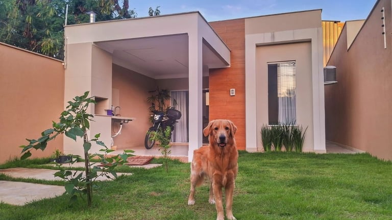 Casa pronta para morar, com 2 quartos (suíte), 2 banheiros, sala de TV e Jantar, área de serviço, circulação, piso todo em procelanato, 1 vaga de garagem, área gourmet e uma excelente área gramada.